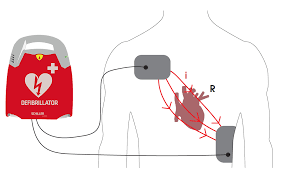 Le défibrillateur agit grâce à des électrodes placées sur la poitrine. Ces électrodes permettent au courant électrique produit par l’appareil de traverser le thorax et d’atteindre le cœur.